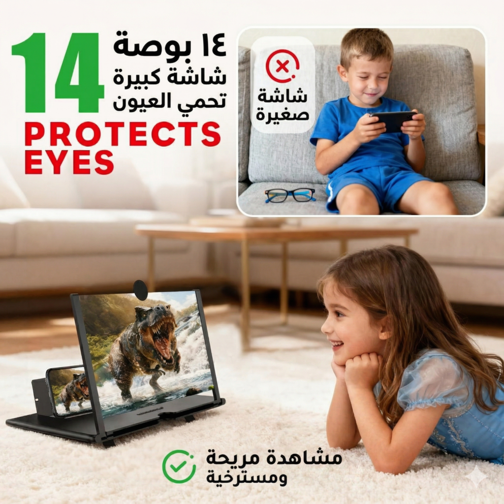 مكبر شاشة ثلاثي الأبعاد مطور حديثًا لعام 2026، بحجم 20 بوصة، يُكبّر شاشة هاتفك من 5 إلى 7 مرات، ويتناسب كل أنواع الهواتف
